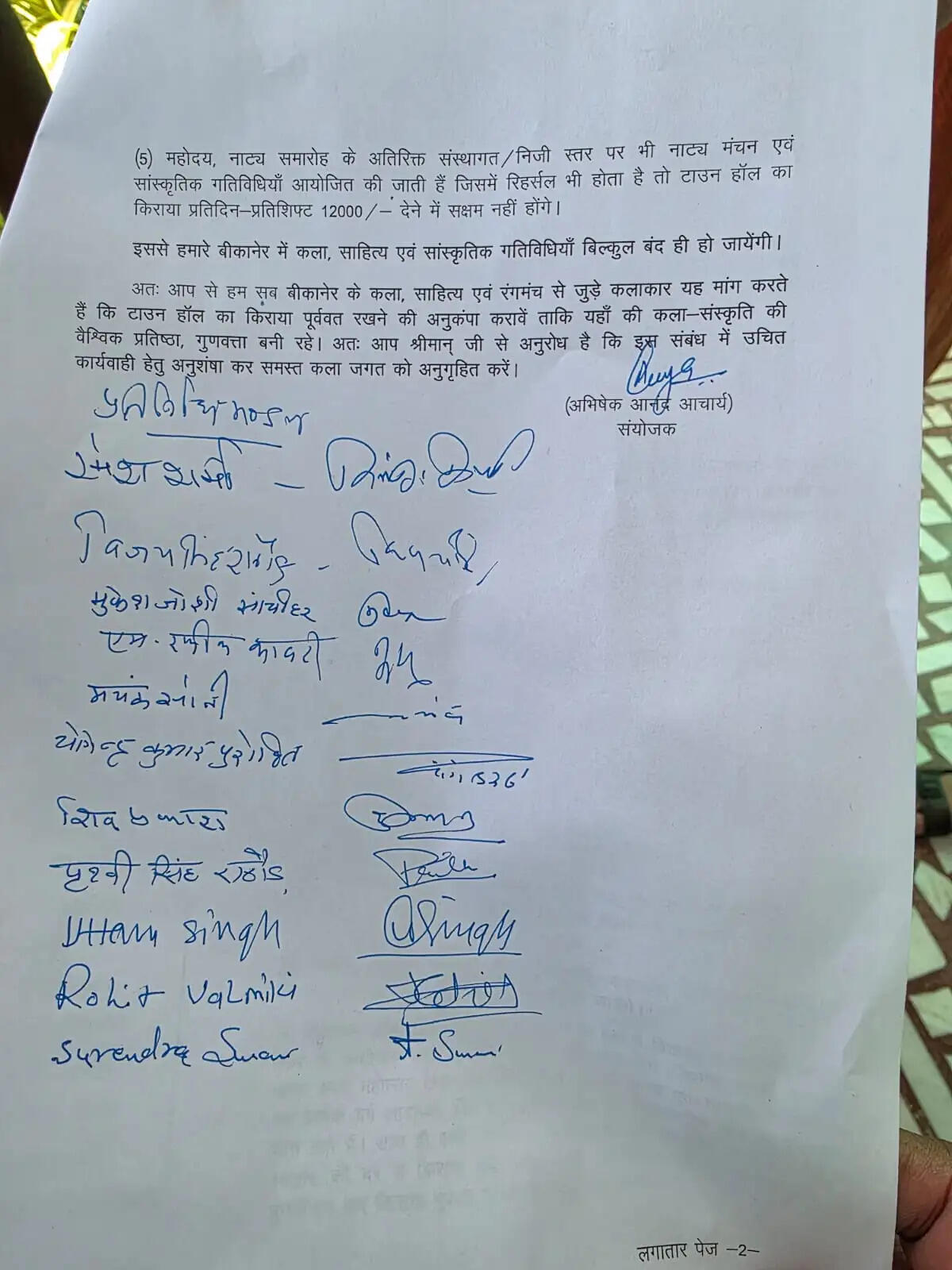 अपने अभिनय, गायन, निर्देशन, लेखन से पूरे देश में बीकानेर की साख बढ़ा पहचान बनाने वाले रंगकर्मियों को मजबूरी में अपने कलात्मक कार्यों की रिहर्सल छोड़कर सड़क पर आना पड़ा है।