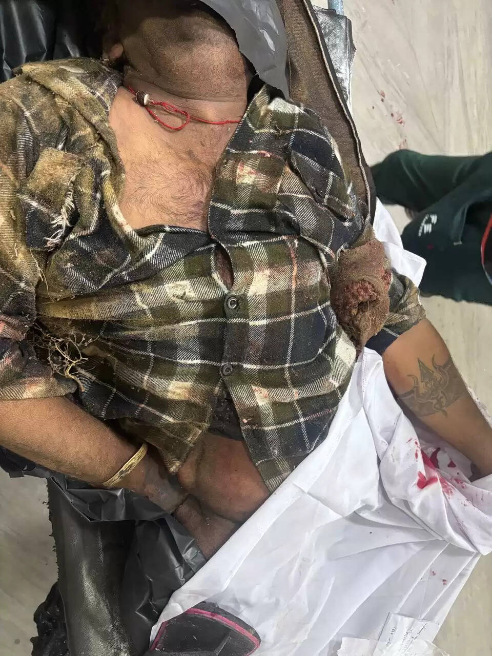मृतक का चेहरा बुरी तरह कुचल गया है। एक पैर शरीर से अलग हो गया वहीं बाकी हिस्से भी क्षतिग्रस्त हुए हैं। गठे हुए बदन वाले इस शख्स की उम्र 35 से 45 वर्ष के बीच लग रही है। उसके हाथ बड़ा सा टैटू बना हुआ है जिसने लिखा है "करणी"। इसके साथ ही त्रिशूल भी बना हुआ है। गले में लाल धागे में पिरोया हुआ रुद्राक्ष है। एक हाथ में सुनहरी कड़ा पहना है। मौके से स्लीपर चप्पल भी मिली है।