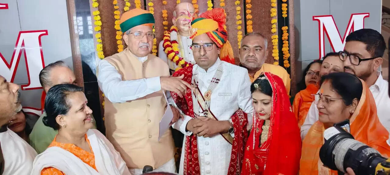 दिल्ली यूनिवर्सिटी के असिस्टेंट प्रोफेसर दे शादी की। यूपीएससी की तैयारी कर रही है दुल्हन राजल को साथ लिया। एक मेडिकल कॉलेज पहुंचे जहां सरदार वल्लभभाई पटेल की प्रतिमा लगी थी। दुल्हा-दुल्हन के लिबास में पहुंचे इस जोड़े ने पटेल की प्रतिमा के सामने कागज हाथ में लेकर कुछ ऐसे शपथ ली जैसे असेंबली में चुने में प्रतिनिधि लेते हैं। रोचक बात यह है कि साथ खड़े होकर शपथ दिलाने वाले शख्स थे केन्द्रीय कानून मंत्री अर्जुनराम मेघवाल।
