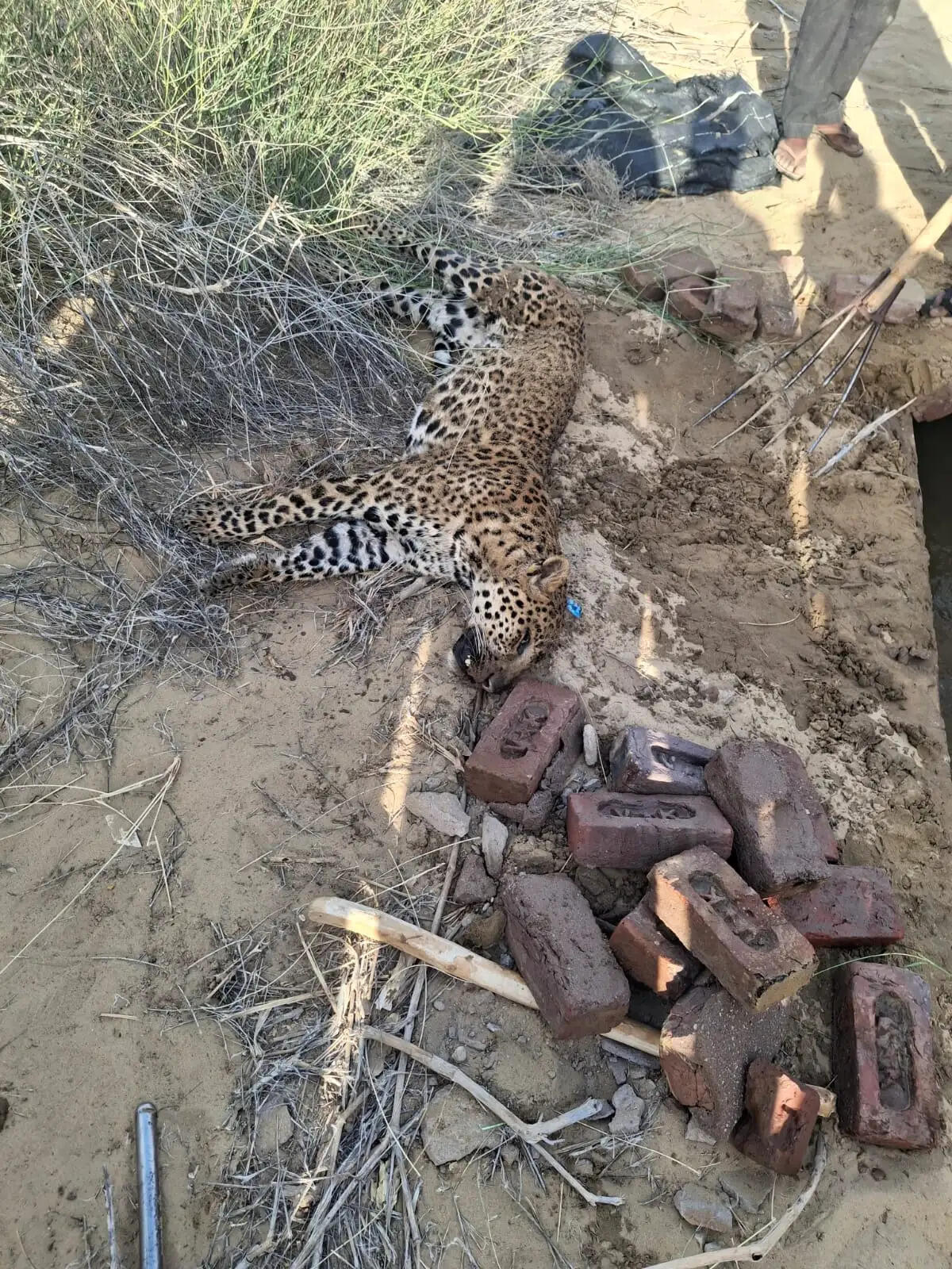 जख्मी तेंदुआ पानी के खाले में जा घुसा, मौत
