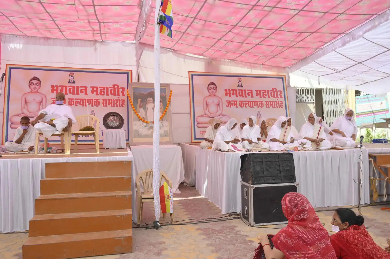 तपागच्छ संघ से अर्पित गुणा श्री ने कहा भगवान महावीर ने जन्म मरण की श्रृंखला को तोड़ दिया, इसलिए हम जन्मकल्याणक महोत्सव मनाते है। यह लोकोत्तर पर्व है। तपागच्छ सेअमित गुणा श्री जी ने गीतिका का संगान किया। तथा भगवान के पांच कल्याणक के बारे में बताया।