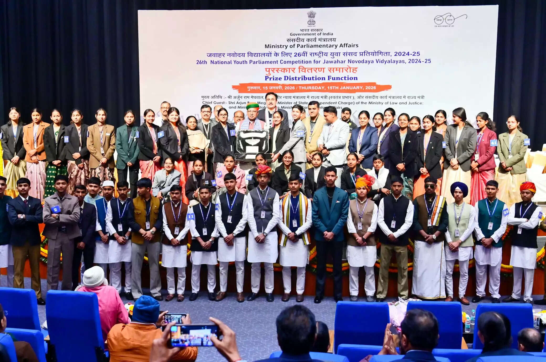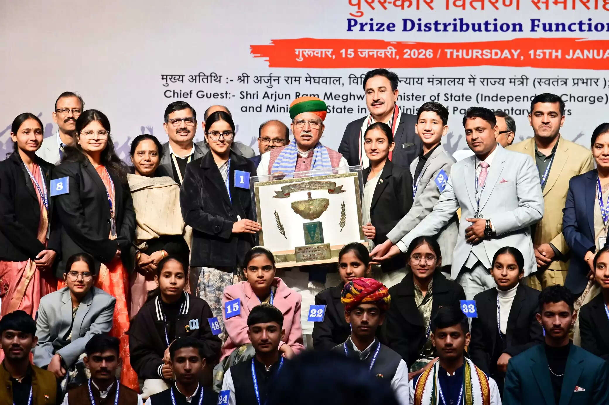 कानून एवं न्याय राज्य मंत्री (स्वतंत्र प्रभार) तथा संसदीय कार्य राज्य मंत्री अर्जुन राम मेघवाल ने समारोह की अध्यक्षता की तथा प्रतियोगिता में उत्कृष्ट प्रदर्शन के लिए विजयी जवाहर नवोदय विद्यालयों की टीमों को पुरस्कार वितरित किए।