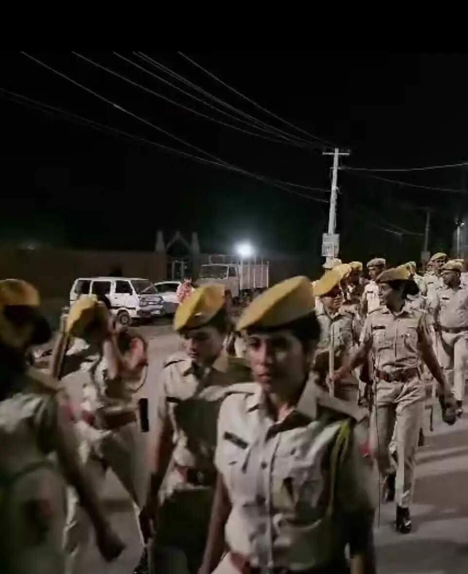 नयाशहर थाने से रवाना होकर अंधेरे में डूबी सड़कों से गुजरा पुलिस का दीपावली फ्लैग मार्च !