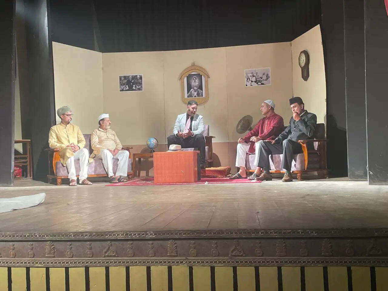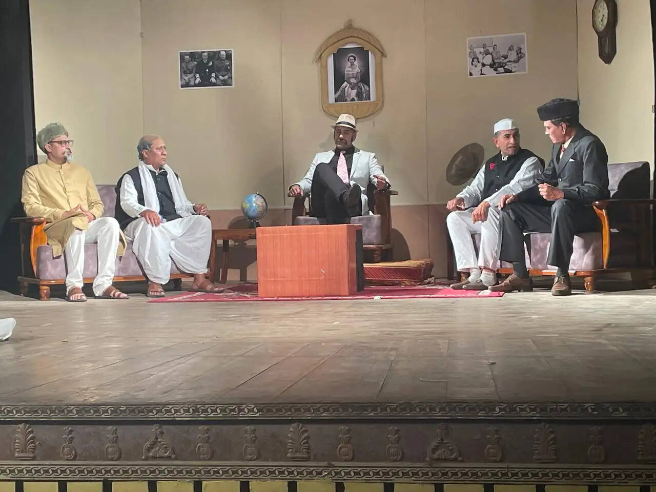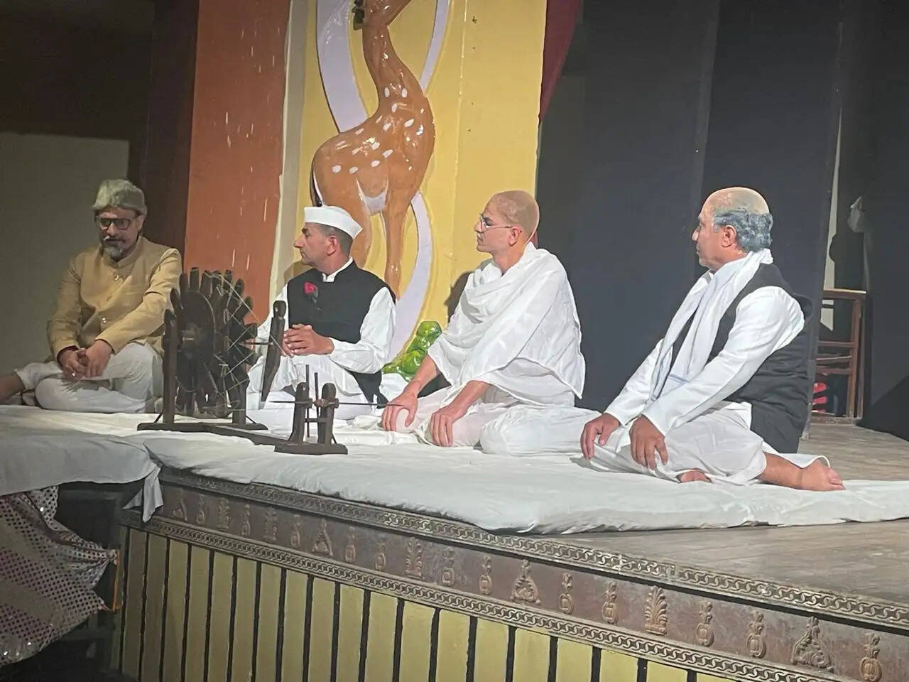 मंच पर जीत सिंह मुण्डे (सूत्रधार), रवि शुक्ल (माउंट बेटन), प्रमोद चमोली (सरदार पटेल) प्रियंका आर्य (मणिबेन), रमेश शर्मा (जिन्ना), बुलाकी शर्मा (शिवराज), दिपांशु पांडे (मौलाना), राकेश सैनी (लॉर्ड वेवल), प्रहलाद सिंह राजपुरोहित (निजामुद्दीन), चन्द्र आहूजा (व्यक्ति एक), शैलेन्द्र सिंह भाटी (कासिव रिज़वी), वसीम राजा 'कमल' (मेनन) सुनीलम पुरोहित (जवाहर) रामदयाल राजपुरोहित (विठ्ठल, कृपलानी) जय खत्री (गांधी) ने किरदारों को जीवंत किया। मंच पार्श्व में प्रकाश प्रभाव राहुल चावला, संगीत प्रभाव प्रियांशु सोनी, रूप सज्जा, केशव गुप्ता तथा मार्गदर्शक प्रदीप भटनागर का था।