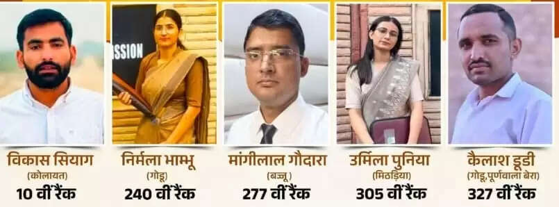 RAS मुख्य परीक्षा के नतीजों में बीकानेर के होनहारों ने जोरदार बाजी मारी है। अकेले कोलायत विधानसभा इलाके से ही 05 युवा RAS चुने गए हैं। इनमें निर्मला भाम्भू और उर्मिला पूनिया जहां दो बेटियाँ हैं वही विकास सियाग, मांगीलाल गोदारा, कैलाश डूडी भी बाजी मरने वालों में हैं। इनमें से विकास सियाग ने 10वीं रेंक हासिल की है।