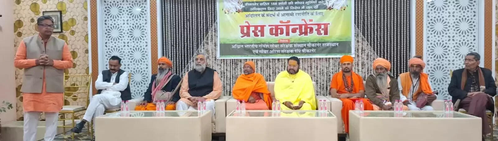 प्रशासन आंखें मूंदे बैठा है और सरकार की नीति भ्रमित हो गई है। जो पार्टी गौमाता के नाम से, साधु-संतों यानि भगवा के दम पर सरकार बना सकी है वो यदि पथ भ्रमित हो जाए तो उसे मार्ग दिखाना भी हमारा कर्तव्य है। यह उद्गार राष्ट्रीय संत सरजूदासजी महाराज ने सोमवार को गोचर ओरण संरक्षण मुद्दे पर रानी बाजार स्थित गोदावरी पैलेस में आयोजित प्रेसवार्ता को सम्बोधित करते हुए व्यक्त किए। महामंडलेश्वर सरजूदासजी महाराज ने सरकार व प्रशासन को 26 जनवरी 2026 तक का अल्टीमेटम दिया है अन्यथा 27 जनवरी 2026 को बड़े स्तर पर आंदोलन-प्रदर्शन किया जाएगा। अखिल भारतीय गोचर गोवंश संरक्षक संस्थान, गोचर ओरण संरक्षण समिति राजस्थान (बीकानेर), अखिल भारतीय संत समिति एवं अनेक प्रमुख सामाजिक संगठनों व संत-महात्माओं के सान्निध्य में आयोजित इस प्रेसवार्ता को सम्बोधित करते हुए महामंडलेश्वर श्री सरजूदास जी महाराज ने कहा कि गत चार माह से चल रहे विरोध के बावजूद जिला प्रशासन व सरकार द्वारा गोचर भूमियों को पुन: गोचर भूमि के रूप में रखने हेतु कोई कार्यवाही नहीं की गई है। इससे पूरा सन्त समाज, गौसेवक, गौपालक व बीकानेर की पूरी जनता में आक्रोश व्याप्त है। सरजूदास जी ने कहा कि जो गौभक्त होगा वो आंदोलन में शामिल होगा, ये धर्मनीति है यहां राजनीति का कोई स्थान नहीं।