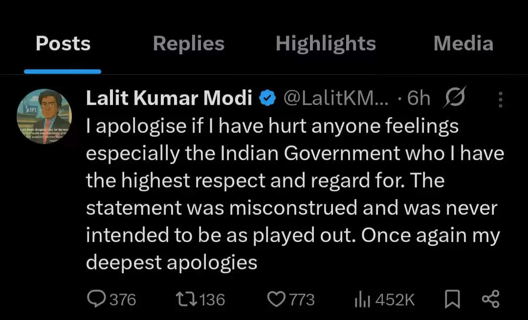 ‘भगोड़ा’ तंज पड़ा भारी, भगोड़े ललित मोदी ने सोशल मीडिया पर पोस्ट कर माफी मांगी