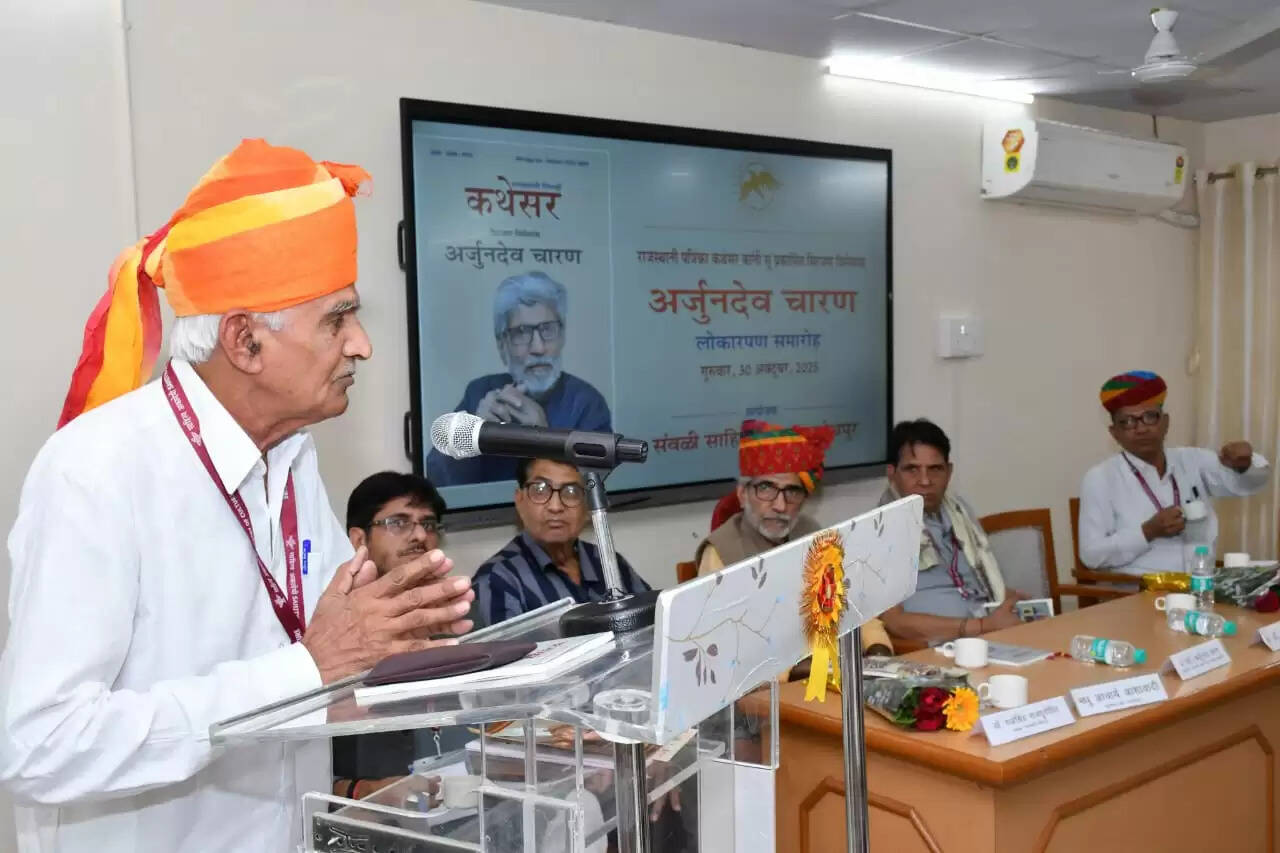 राजस्थानी भाषा की तिमाही ' कथेसर ' ने इस बार अपना अंक राजस्थानी कवि, आलोचक, नाट्य गुरु डॉ अर्जुन देव चारण के सृजन पर केंद्रित कर निकाला है। इस अंक का लोकार्पण 30 अक्टूबर को जयनारायण व्यास विश्वविद्यालय के राजस्थानी विभाग के सभागार में प्रदेश के रचनाकारों की उपस्थिति में हुआ। खुद डॉ चारण इस अवसर पर उपस्थित थे।