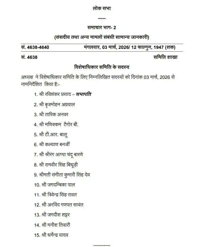 अध्यक्ष ने विशेषाधिकार समिति का गठन किया, रविशंकर प्रसाद 15 सदस्यीय समिति के सभापति बने