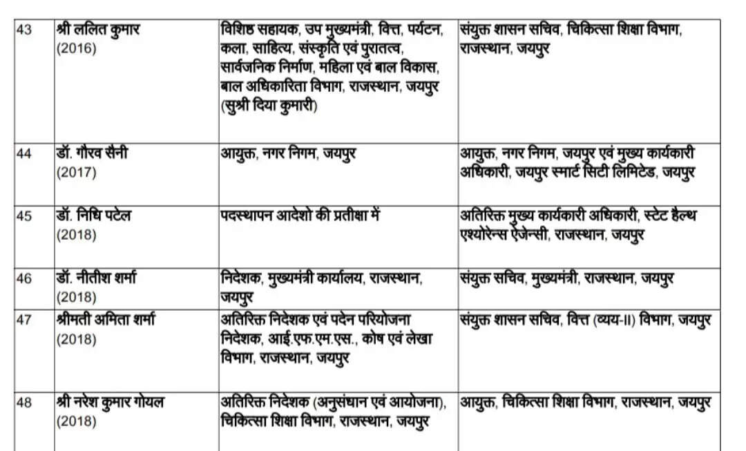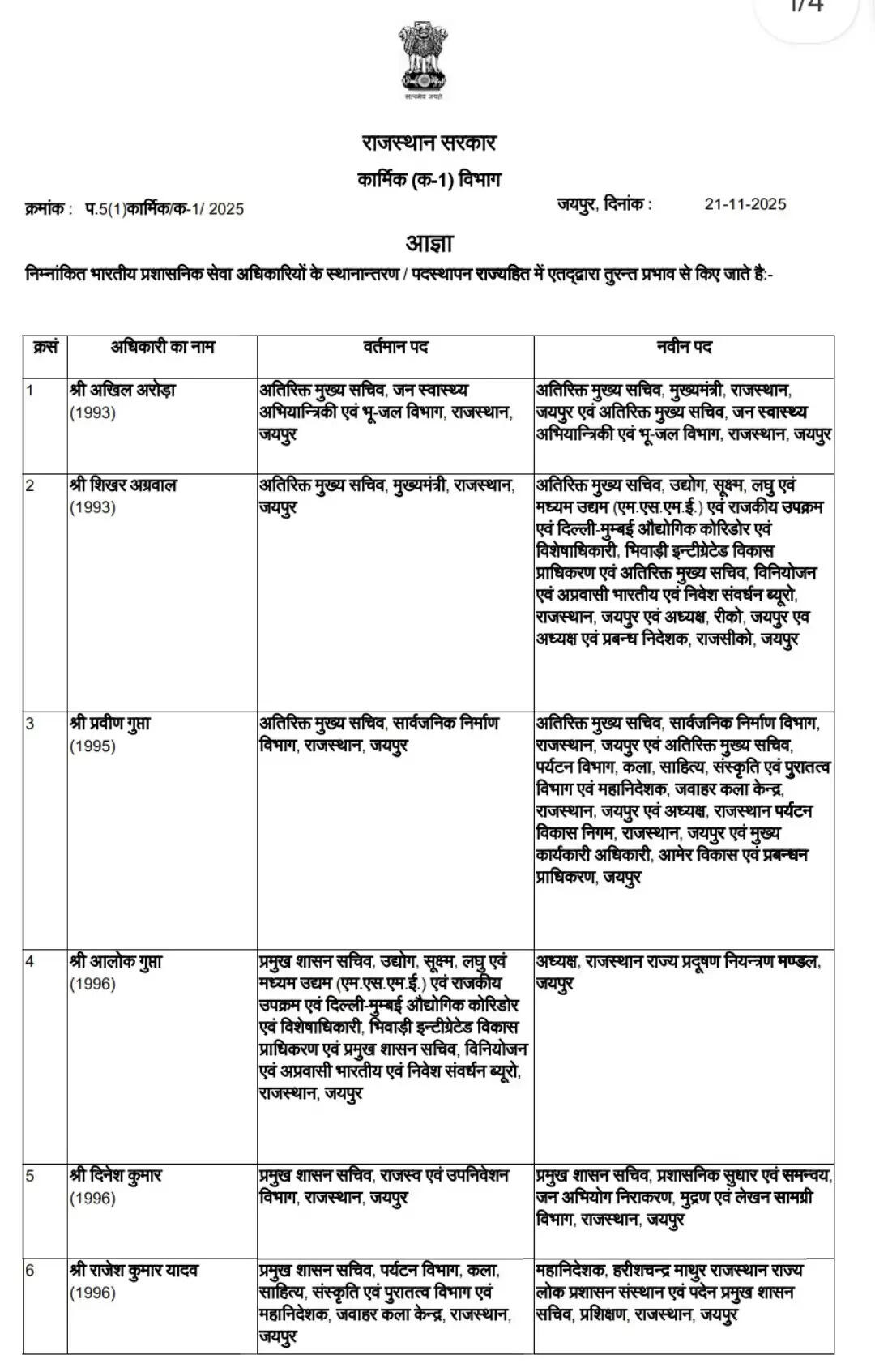 Rajasthan IAS Transfer : नए मुख्य सचिव श्री निवासन के ज्वॉइन करने के बाद राजस्थान में बड़ा प्रशासनिक फेर बदल!