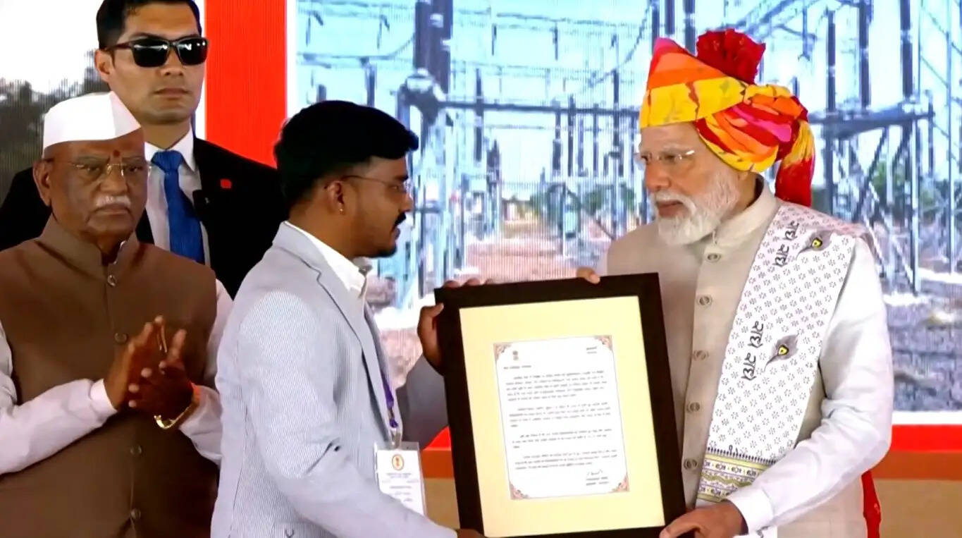 मोदी ने मंच पर दो युवाओं को अपने हाथों से नियुक्ति पत्र सौंपे। कायड़ विश्राम स्थली पर आयोजित जनसभा को संबोधित करते हुए प्रधानमंत्री ने राज्य सरकार के दो साल के कार्यकाल और उपलब्धियों पर संतोष जताया। मोदी ने विश्वास दिलाया कि डबल इंजन की सरकार, विकास के नये पथ पर जनता की सेवा में और भी तेजी के साथ अपना कर्तव्य पूरा करेगी।