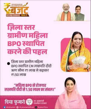 - Rural Women BPO, राज सखी स्टोर्स और उद्यमिता केंद्रों के माध्यम से महिलाओं को आर्थिक रूप से सशक्त बनाने पर जोर दिया गया है ।