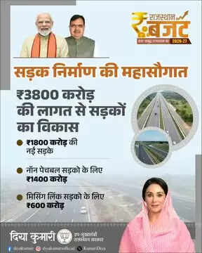 - 250 ‘अटल प्रगति पथ’ परियोजनाओं पर 500 करोड़ रुपये, औद्योगिक क्षेत्रों की कनेक्टिविटी के लिए 400 करोड़ रुपये तथा मानसून के बाद सड़क मरम्मत हेतु 500 करोड़ रुपये का प्रावधान किया गया है ।