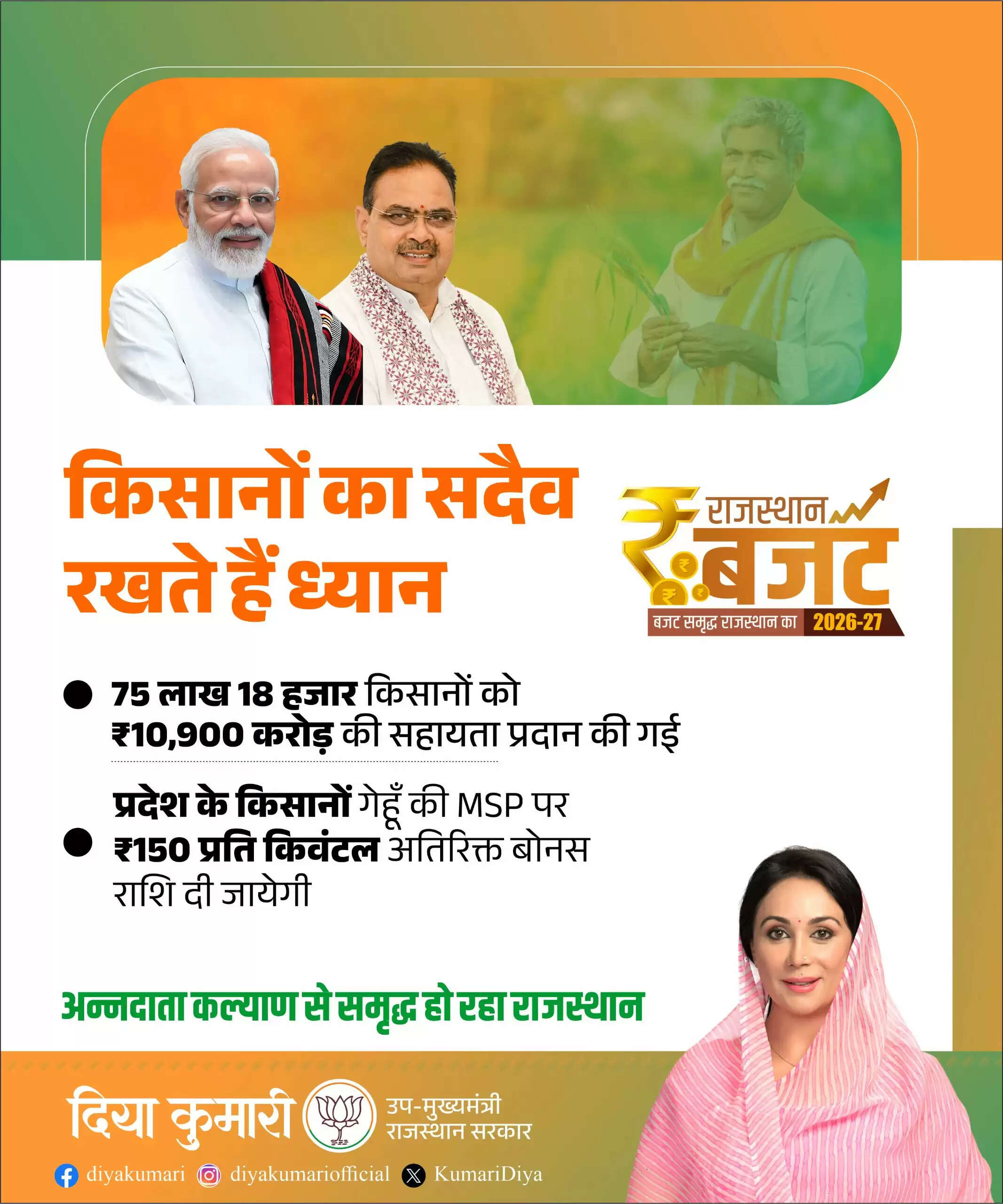 राजस्थान की उप मुख्यमंत्री और वित्त मंत्री दिया कुमारी ने 02 घंटे 54 मिनट में वर्ष 2026-27 का बजट भाषण पढ़ा। इस दौरान उन्होंने विकास का रोडमेप बताया। अब तक के काम के गिनाएं। पिछली सरकार पर कटाक्ष कर प्रतिपक्ष पर हमला बोल वही ऐसी चुटकियां भी ली जिससे सदन में ठहाके लगे। बाद में मुख्यमंत्री भजन लाल ने इस बजट को ‘संकल्प से सिद्धि’ की दिशा में आगे बढ़ने वाला बताते हुए इसे विकास, सुशासन और आत्मनिर्भरता का रोडमैप बताया है।