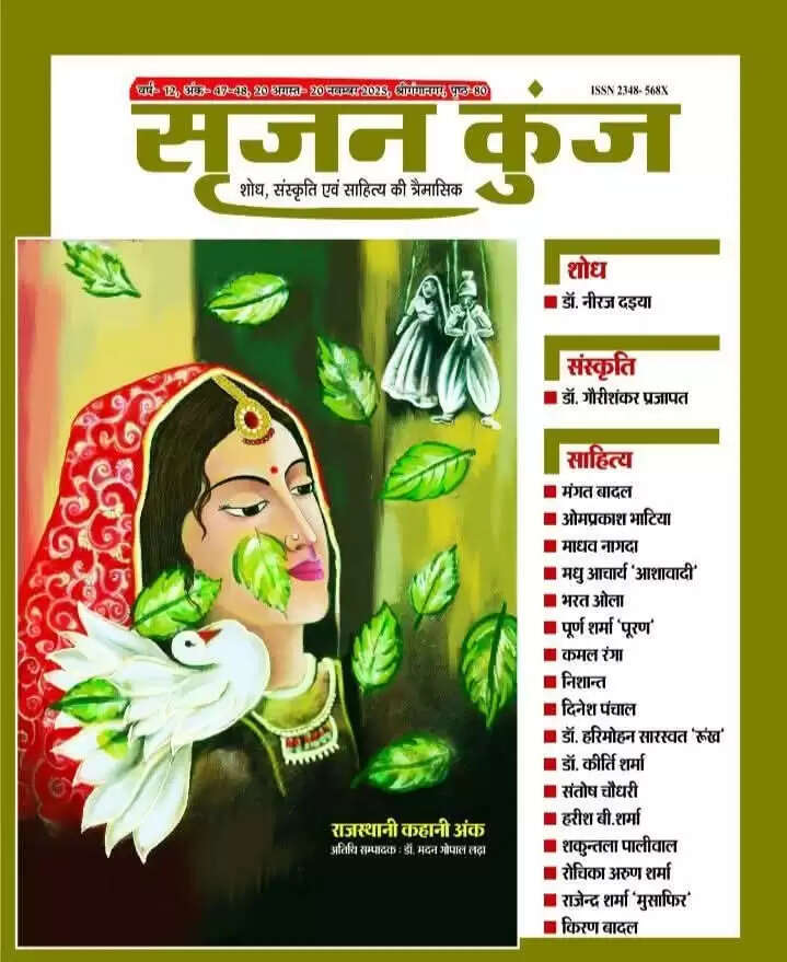 'सृजन कुंज' का यह अंक 47-48 (अगस्त से नवंबर 2025) राजस्थानी कहानी की समकालीन धारा को केंद्र में रखता है और इस बात को प्रमाणित करता है कि राजस्थानी साहित्य अब केवल क्षेत्रीय पाठक वर्ग तक सीमित नहीं है। हिंदी और राजस्थानी के साझा साहित्यिक परिदृश्य में यह अंक एक महत्त्वपूर्ण हस्तक्षेप की तरह सामने आता है। इसे पढ़ते हुए महसूस होता है कि इसके पीछे गहरी संपादकीय समझ, साहित्यिक निष्ठा और रचनात्मक परिश्रम मौजूद है।